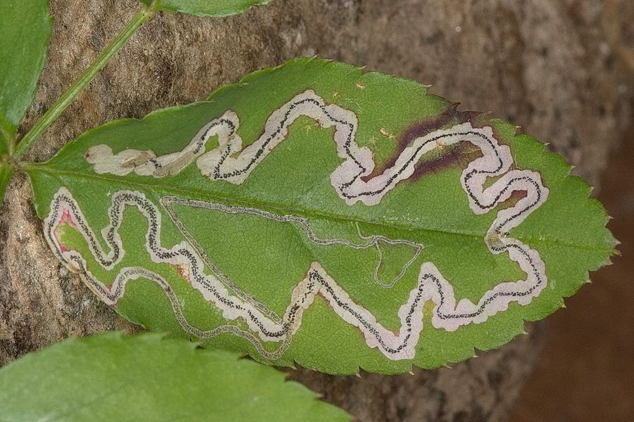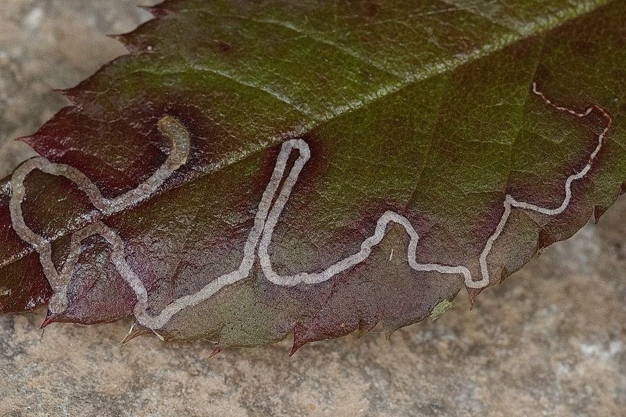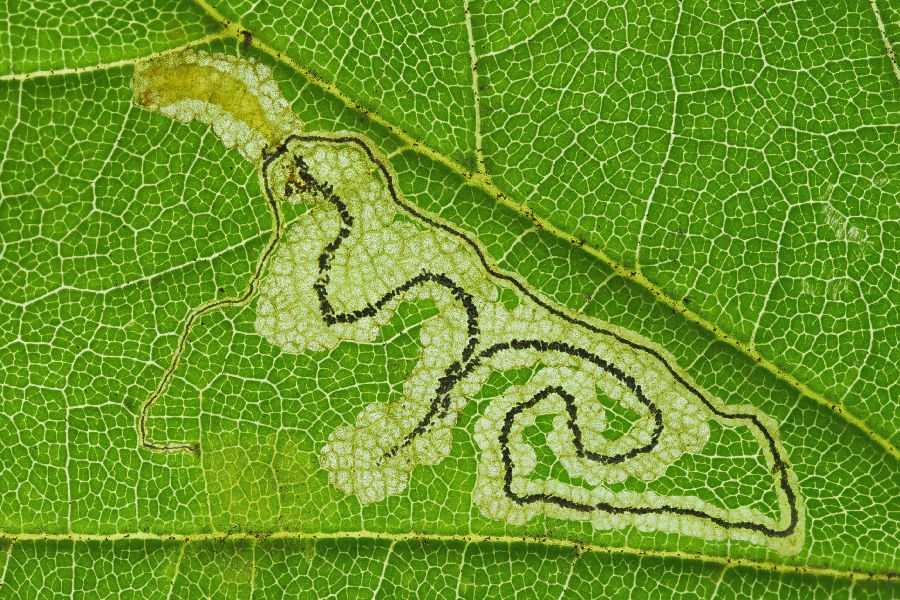 40 Fotografien, Minen von Schmetterlingsraupen in Blättern, 2024